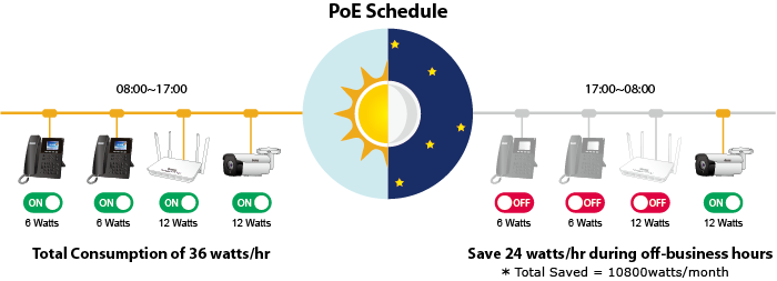 Under the trend of energy savings worldwide and contributing to environmental protection on the Earth, the UPOE-800XG can effectively control the power supply besides its capability of giving high watts power. The built-in “PoE schedule” function helps you to enable or disable PoE power feeding for each PoE port during specified time intervals and it is a powerful function to help SMBs or enterprises save power and money.