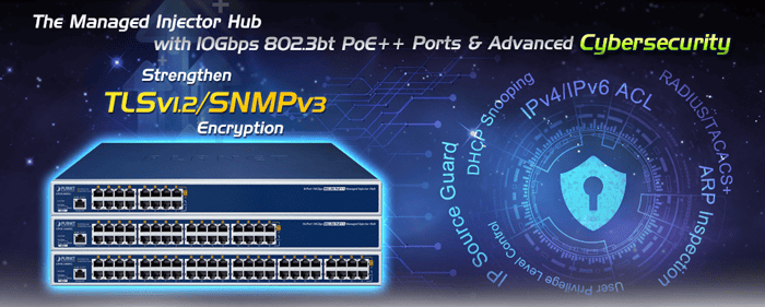 To ensure robust cybersecurity, the 10Gbps 802.3bt PoE++ Managed Injector Hub -UPOE-800XG features enhanced management functions, including TLSv1.2 and TLSv1.3 protocols.