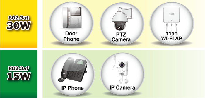 The PoE in-line power following the IEEE 802.3at Power over Ethernet Plus standard makes the VC-231GP able to deliver Gigabit speed Ethernet data and up to 30 watts of power to remote PoE PDs over one Cat.5E/6 Ethernet cable. The VC-231GP provides more flexibility in power requirements for all kinds of PDs at affordable installation costs.