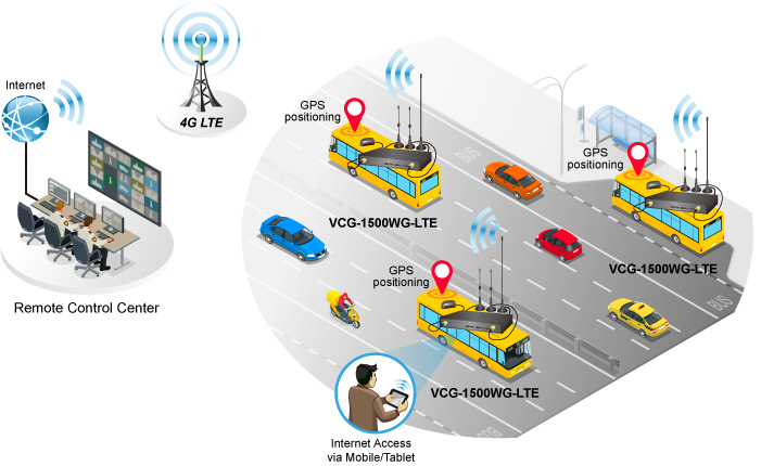 PLANET VCG-1500WG-LTE is a reliable, secure and high-bandwidth communications vehicle cellular gateway for demanding mobile applications and IoV (Internet of Vehicles) deployments. It features 4G LTE (Long Term Evolution), wireless AP, five Ethernet ports (4 LAN and 1 WAN), GPS,  VPN technology and bandwidth management bundled in a mountable metal case to establish a public network connection and allows passengers to access Internet.
