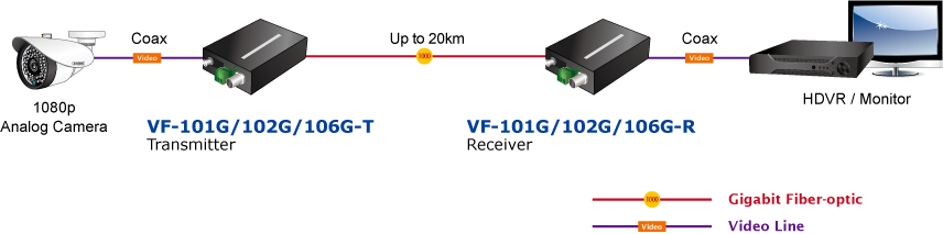 • VF-101G/102G/106G-R: 1-channel Video over Gigabit Fiber Receiver