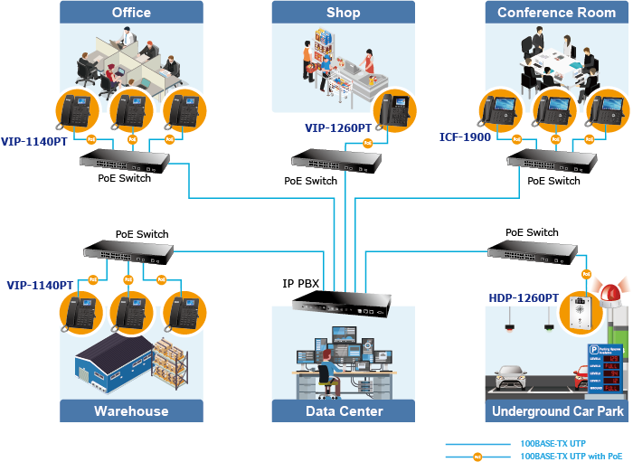 Help your teams move faster with exceptional audio quality and built-in flexibility. The VIP-1140PT is much easier to install and configure than the traditional phone system. Its low cost and high-definition voice quality give you value for money. Based on standard SIP 2.0, it is compatible with all the standard SIP-based servers.