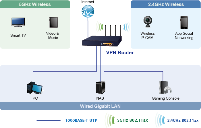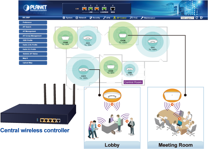 The innovation of the Internet has created tremendous worldwide opportunities for e-business and information sharing. It has become essential for businesses to focus more on network security issues. The demand for information security and wireless connetion has become the primary concern for the enterprises. To fulfill this demand, PLANET has launched the all-in-one VR-300W5 and VR-300PW5 Wireless VPN Security Routers that carry several main categories across your network security deployments: 802.11ac, cybersecurity, SPI firewall security protection, policy auditing (content filtering, VPN tunnel and MAC/IP filtering), AP controller, captive portal, RADIUS and easy management (Setup Wizard, DHCP Server and Dashboard). Furthermore, its Dual-WAN Failover, Outbound Load Balance and High-Availability features can improve the network efficiency while the web-based interface provides friendly and consistent user experience.