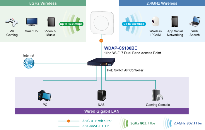 • product_editor_4418_tab_content: <strong>Infinite Possibilities and Seamless Connectivity for a Comprehensive Smart Environment</strong> The WDAP‑C5100BE is not only the ideal choice for upgrading enterprise networks but also a key driving force behind the smart environment revolution. Whether it's in the bustling airport hubs, modern large-scale offices, dynamic conference centers, or every corner of smart cities, the WDAP‑C5100BE delivers stable, efficient, and low-latency wireless connectivity, ensuring every user enjoys an exceptional networking experience. Moreover, it is equally suited for diverse commercial settings such as hotels, restaurants, and educational institutions, enabling customers, travelers, and students alike to experience ultimate network speed and connection stability wherever they are. The WDAP‑C5100BE is ideal for future smart living and high-efficiency work environments. <img class="img-fluid aligncenter" src="https://planet.com.tw/storage/products/49831/WDAP-C5100BE-10.png" alt="" width="700" height="442" />
