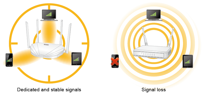 Beamforming is to improve your Wi-Fi signal when you are far away from your router. When you use beamforming, Wi-Fi beamforming narrows the focus of that router signal, sending it directly to your devices in a straight line, thus minimizing surrounding signal interference and increasing the strength of the signal that ultimately bring you the following benefits:- Extend your Wi-Fi coverage