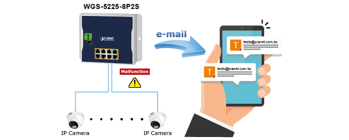 The WGS-5225-8P2S provides event alert function to help to diagnose the abnormal device owing to whether or not there is a break of the network connection, or the rebooting response.