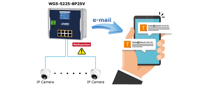The WGS-5225-8P2SV provides event alert function to help to diagnose the abnormal device owing to whether or not there is a break of the network connection, or the rebooting response.