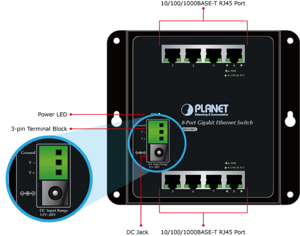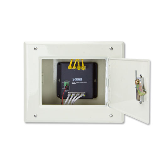 Designed to be installed in a wall enclosure or simply mounted at any convenient location on a wall, PLANET WGS-803 is an innovative, wall-mounted industrial 8-port Gigabit Ethernet Switch. It comes in a compact but rugged IP30 metal housing. Featuring ultra networking speed and operating temperature ranging from -10 to 60 degrees C, the WGS-803 is an ideal solution to meeting the demand for the following network applications.