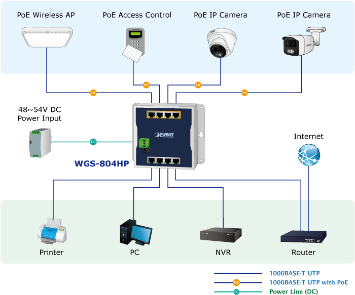 The WGS-804HP is able to operate reliably, stably and quietly in any environment without affecting its performance, and provides a quick, safe and easy deployment of PoE PDs with power feeding.