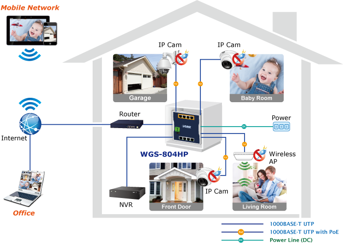 Internet is very popular the world over as users surf online daily with their mobile devices, such as smart phones and tablets, or laptop computers. However, users want more from the Internet, like how to use their mobile devices to control something via the Internet, thus making life more convenient. The WGS-804HP is based on such concept to help users implement the Internet of things (IoT) on the PoE network. Home automation is no longer a dream as Gigabit network performance plus power over Ethernet can easily drive IoT equipment, making it a smart home.