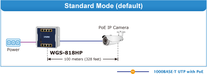 The WGS-818HP provides Standard, VLAN and Extend operation modes. The WGS-818HP can operate as a normal IEEE 802.3at/ PoE+ switch in the standard operation mode.