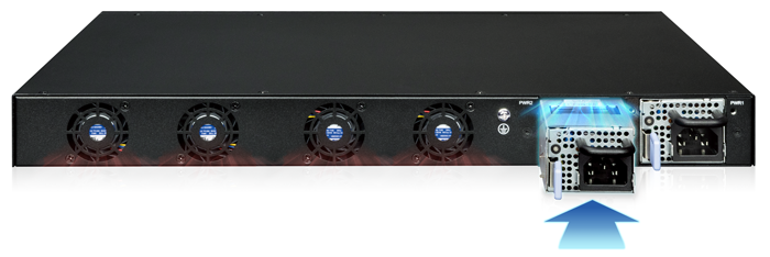 • Dual hot-swappable power supply (AC/DC/mixed) with front-to-back airflow