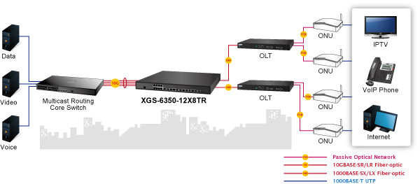 The XGS-6350-12X8TR provides IPv6 management and enterprise-level secure features such as SSH, ACL, WRR (Weighted Round Robin) and RADIUS authentication. The XGS-6350-12X8TR thus helps the enterprises to step in the IPv6 era with the lowest investment. In addition, you don’t need to replace the network facilities when the IPv6 FTTx edge network is built.
