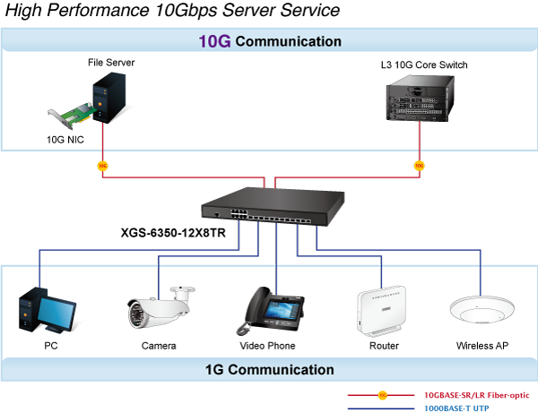 The XGS-6350-12X8TR boasts a high-performance switch architecture that is capable of providing non-blocking switch fabric and wire-speed throughput as high as 132Gbps, which greatly simplifies the tasks of upgrading the LAN for catering to increasing bandwidth demands.