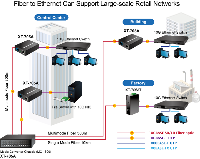 The XT-705A offers wire-speed packets transfer performance without the risk of packet loss. The high data throughput of the device makes it ideal for most Gigabit environments. With a 20Gbps internal fabric,16K jumbo frame feature and auto negotiation support in its 10 Gigabit port, the XT-705A can handle extremely large amounts of data transmission in a secure topology linking to data center cloud computing, enterprise backbones, campus networks, and carrier infrastructure.