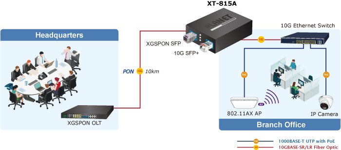 Its dual ports connect to servers, switches, storage systems, and wireless access points. The XT-815A also supports 10GPON to 10Gbps Ethernet bridging, making it suitable for data center cloud computing, enterprise backbone networks, and inter-building deployments.